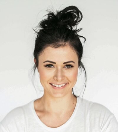 A modern office building with a glass facade features sharp, angular architectural lines. A large red 'T' logo is prominently displayed on the rooftop, accompanied by several antenna structures.